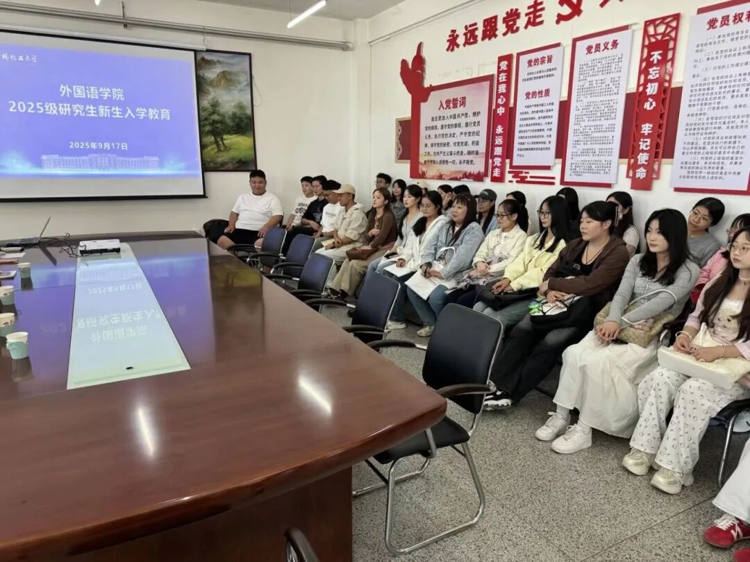 金秋送爽,丹桂飘香。2025年9月17日下午,吉林化工大学外国语学院2025级硕士研究生新生入学说明会于2教300会议室隆重举行。学院党委书记董安康、副院长汪洪梅、翻译教学与研究中心主任张璐、教学秘书梁圣爱等领导老师出席本次会议,与全体2025级研究生新生共同参与这一重要活动。会议由学院党委副书记裴林主持。
