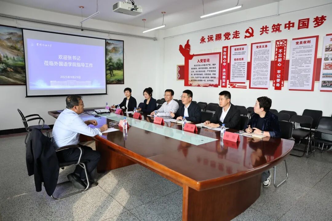 听取汇报后,张明耀书记对外国语学院近年来取得的成绩予以高度评价。他强调,学院要始终围绕“立德树人”根本任务,持续深化教育教学改革,不断加强专业与课程建设,切实提升人才培养质量。要注重强化学生的语言实践能力、跨文化沟通能力及创新能力的培养,突出实践导向。围绕翻译硕士专业学位授权点建设,应进一步整合团队力量,凝练形成以工程翻译与商务翻译为主的两个特色研究方向。要充分发挥外语学科优势,主动对接地方发展需求,积极服务区域经济社会建设。同时,必须扎实做好学生工作,强化学风建设,牢牢守住校园安全底线,经常深入学生群体,及时掌握学生思想动态与实际需求。此外,学院还应重视辅导员队伍素质能力的持续提升,为育人工作提供坚实保障。